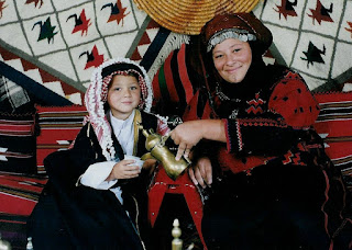 This is a picture taken at a restaurant in Jordan . Hannah and I wanted to stop and take pictures before we went in.