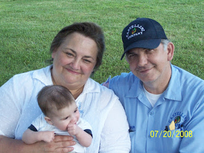 Friday night Scott and I decided to go camping at East Fork lake. It was so much fun sitting around the campfire, roasting hot dogs, and marshmallows. Ethan loved it too. He never fussed one time! The only bad thing was when Scott went to put air in the air mattress the pump wouldn't work, so we had to sleep on the hard ground. Besides that, we had a great time. We left Saturday morning to head to the Kennedy reunion.