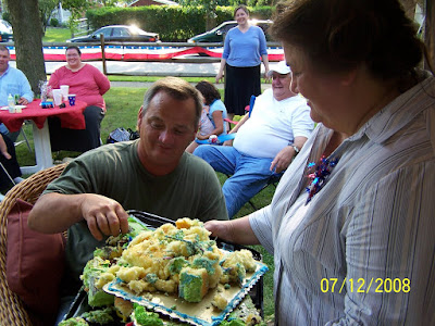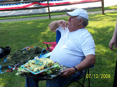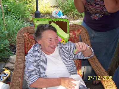 Saturday was Mom's and Nate's birthday party. It was a birthday to remember. We had an uninvited six foot snake show up, which Nate enjoyed chopping up with his machete. Then the cake holder, I won't mention any names, but my youngest sister had butterfingers and lost the cake on grandma's head!! What fun!!!